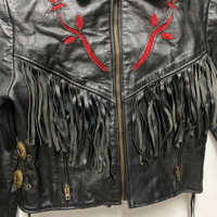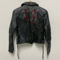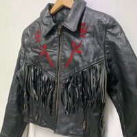 Vintage Protech Leather Biker Jacket Navajo Style Size on tag:12 Chest: 18”in Length: 20”in Hawaiimarket