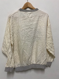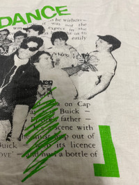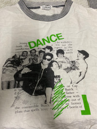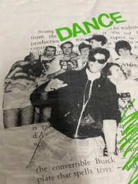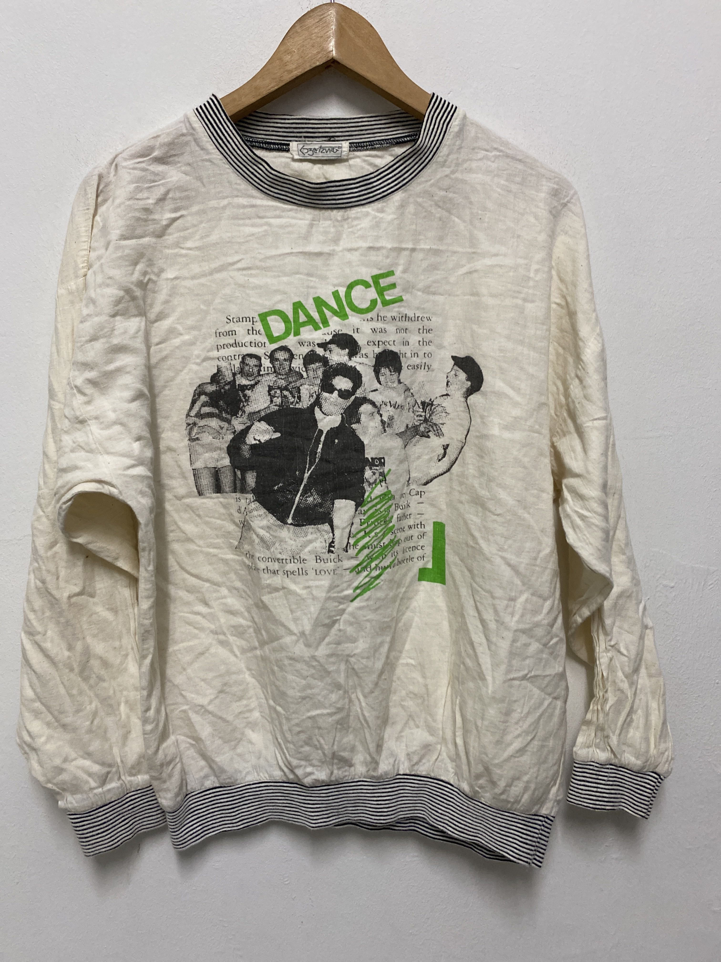 Rare Japanese Graphic Sweatshirt – Kuroki Taichi × StevieG “DANCE” Print – Harajuku Zine Style Step into Japanese underground culture with this rare graphic sweatshirt by Kuroki Taichi × StevieG. This standout piece features a vibrant “DANCE” graphic layered over a chaotic monochrome collage of people mid-movement, with scattered English text and green scribble strokes that give it a rebellious, zine-style energy. Finished with black & white striped ribbing on the neck, cuffs, and hem, this pullover captures a nostalgic ‘90s Harajuku aesthetic mixed with post-punk and DIY clubwear vibes. Details: • Size: Fits like Medium (please refer to measurements) • Color: Off-white / Natural cotton tone • Design: Graphic front print, plain back • Material: Likely 100% cotton • Neckline: Crewneck with ribbed contrast • Made in Japan (label in Japanese: くろきたいち) • Condition: Gently worn vintage with some natural aging and wrinkling (adds to character) This piece is ideal for collectors of niche Japanese fashion, rave culture, or vintage graphicwear with a story. Measurements (estimate): (Add if available: Pit to pit: 22”length:26”sleeve length:19.5”) Kuroki Taichi sweatshirt, StevieG Japan shirt, Japanese zine fashion, Harajuku vintage, rare graphic sweatshirt, DANCE print pullover, Japanese underground clothing, 90s Japanese style, zine art fashion, Tokyo clubwear #KurokiTaichi #StevieGJapan #JapaneseVintage #DanceSweatshirt #HarajukuStyle #ZineFashion #UndergroundWear #90sJapan #GraphicPullover #RareFind