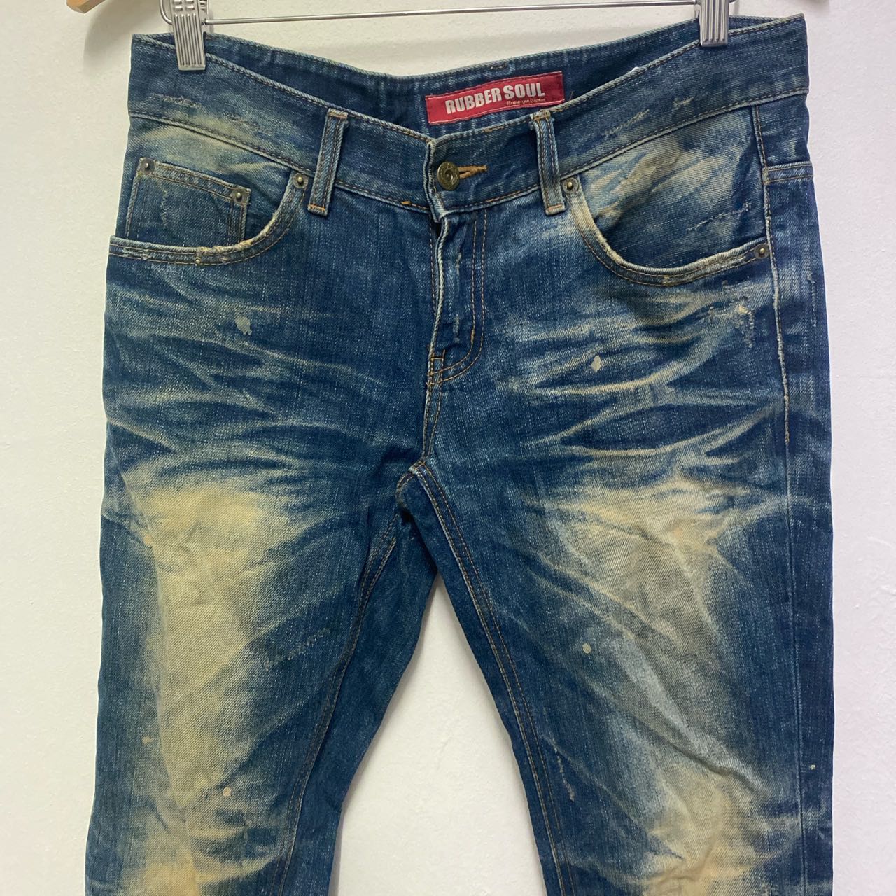 Rubber Soul Denim Distressed W33 Waist:33”in Outseam 41”in Inseam 31.5”in Thigh 11”in Knee 8.5”in Open leg 8.5”in Rise 8.5”in Sale are final Sku:rakdlm 22623 #rubbersoul #premiumdenim #japanesebrand #japanesedesigner #designer