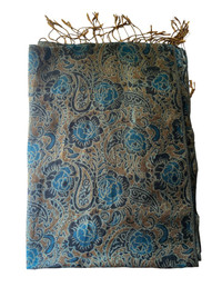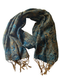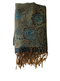 Blue and brown paisley scarf with fringe #paisley