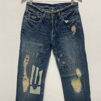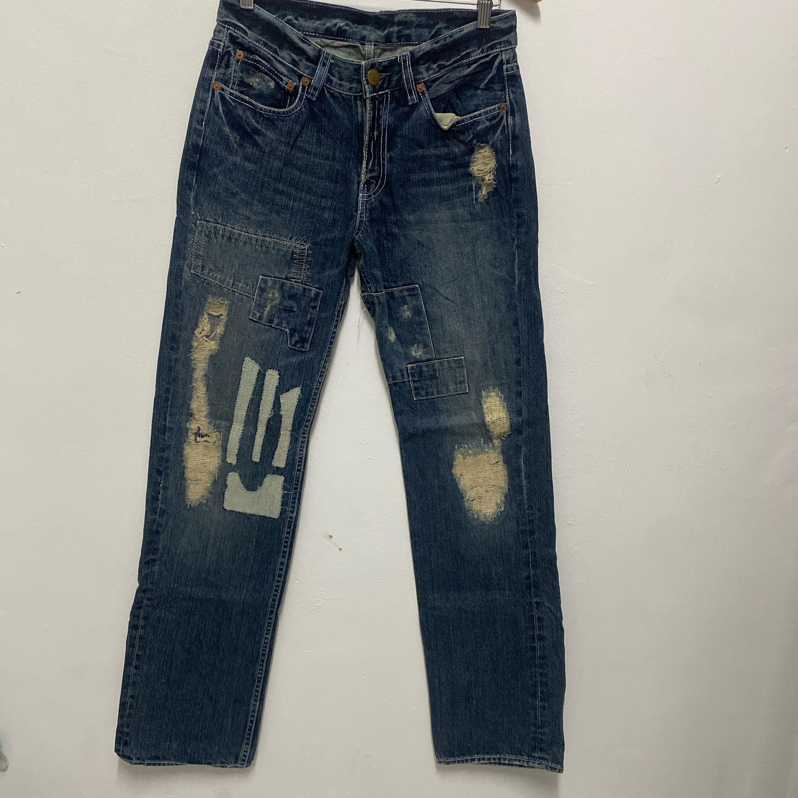 Takeo Kikuchi Distressed Denim Boro Sashiko Patches Size on tag:2 Manual waist size: 30 Outseam: 42”in Inseam:32”in Open leg: 8”in Front rise:9”in Back rise: 12”in Thigh: 11”in Knee:8.5”in Hip:19”in Sale are final