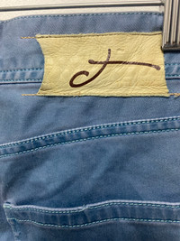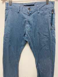 Tete Homme Light Blue Slim Fit Casual Pants with Zipper Detail Tete Homme is a Japanese menswear brand known for its fusion of streetwear and tailored minimalism. Popular in Japan’s urban fashion scene, Tete Homme produces versatile clothing with a modern silhouette and attention to fine detailing. Their pieces often appeal to fashion-conscious individuals seeking contemporary yet refined daily wear. Upgrade your wardrobe with these Tete Homme slim fit pants in a washed light blue tone. Made from a soft cotton blend, these trousers feature a tailored cut with tapered legs, front slash pockets, and a stylish brass zipper accent. The rear features dual patch pockets and a leather logo patch, adding to its refined look. Ideal for smart-casual settings, pair it with sneakers or loafers for effortless style. Details: • Brand: Tete Homme • Color: Light Blue • Material: Likely Cotton Blend (soft and breathable) • Fit: Slim/Tapered • Front Pockets: Standard slash pockets with right-side zipper detail • Back Pockets: Two patch pockets • Closure: Button and zip fly • Branding: Leather patch at back with “T” script logo • Condition: Gently used, minor creasing (easily fixed with steam or iron) Manual waist size: 30 Outseam: 44” Inseam: 32” Open legs: 8” Front rise: 9” Thigh: 11” Knee: 8” Tete Homme pants, Japanese menswear, light blue chinos, slim fit trousers, streetwear Japan, zipper pocket pants, modern men’s fashion, tapered pants, casual smartwear, designer pants Japan #TeteHomme #JapaneseFashion #Menswear #SlimFitPants #LightBlueChinos #StreetwearJapan #MinimalistStyle #ZipperPants #ModernMenswear #SmartCasualLook