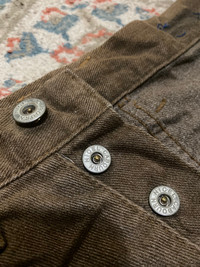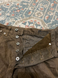 Please read all description carefully before buying, if you have any please text me.. š„VERY AWESOME COMBINATIONš„ Tag : Nigel Cabourn Lot model: Nigel Cabourn british fashion designer. This pant very rare from design patern with combination from British Army pant & Levis selvedge model 1900s cinch belt single pocket. The Front body is British Army Pant with wool material. When looking back is denim material, there is only pocket on the right side. A cinch belt is attached to the back yoke. Its completely diferent combination. Condition : Very Good worn 8/10 Size : 28 Rise: 11 inch Outseam : 44 inch Inseams : 33 inch Thigh : 12 inch Open leg : 8 inch Material: *Please compare the measurement with your garment. Payment & Shipping >Accept Paypal only >This item will be ship along with tracking Number after received a completed payment Dear Valued Customer ~All measurements were been measured hang on wall. ~Please dont expect this item condition is 100% like new unless i have mention it ~Please do not hesitate to contact me if you have any inquiries. Its my great pleasure to have a conversation with customers ATTENTION! Please pay closr attention to measurements provided. Do not reply on tag size as a pre-worn items may have been altered, stretched or shrunk & vintage sizes. Do not directly translate the modern sizes. The best way to ensure a correct fit is to compare our measurements of a similiar item that you know fits you well. Please enlarge the photos for clearer image. ***Please do not expect the shirt in mint condition unless stated. Its because vintage and used items may have sign of wear. Thank You for visit, happy shopping & have a nice day. Sku:home2
