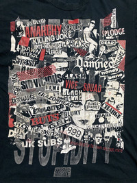 Vintage 2000s Punk Rock Band Collage T-Shirt Black Anarchy Crass The Damned UK Subs Starworld S Rare vintage punk rock band collage T-shirt featuring iconic bands such as The Damned, Crass, UK Subs, Vice Squad, and more. This black tee, made by Starworld, is a must-have for punk rock collectors. The graphic showcases anarchist and anti-establishment themes with a bold mix of typography and imagery. • Brand: Starworld • Size: Small (S) • Material: 100% Cotton • Color: Black • Condition: Pre-owned, good condition with slight signs of wear • Design: Heavy punk influence, featuring various legendary bands Perfect for punk music lovers, vintage collectors, and streetwear enthusiasts. vintage punk rock t-shirt, anarchy punk tee, The Damned Crass UK Subs, Starworld band tee, 2000s punk shirt, hardcore punk shirt, anti-establishment tee, vintage music merch, rare band t-shirt, classic punk style #VintageTee #PunkRock #BandTShirt #Anarchy #Crass #TheDamned #UKSubs #Starworld #Streetwear #2000sFashion #RareFind #HardcorePunk #MusicMerch