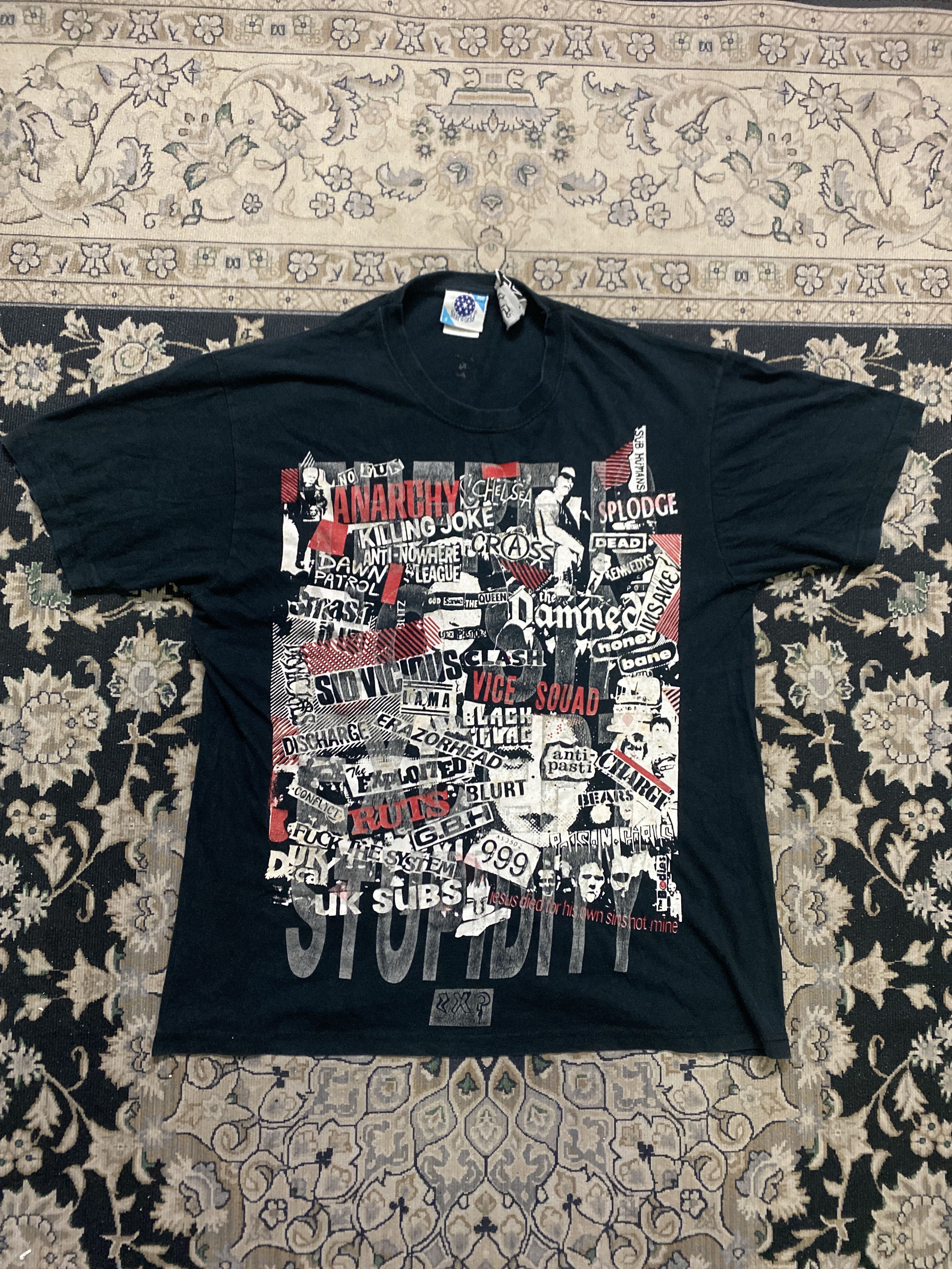 Vintage 2000s Punk Rock Band Collage T-Shirt Black Anarchy Crass The Damned UK Subs Starworld S Rare vintage punk rock band collage T-shirt featuring iconic bands such as The Damned, Crass, UK Subs, Vice Squad, and more. This black tee, made by Starworld, is a must-have for punk rock collectors. The graphic showcases anarchist and anti-establishment themes with a bold mix of typography and imagery. • Brand: Starworld • Size: Small (S) • Material: 100% Cotton • Color: Black • Condition: Pre-owned, good condition with slight signs of wear • Design: Heavy punk influence, featuring various legendary bands Perfect for punk music lovers, vintage collectors, and streetwear enthusiasts. vintage punk rock t-shirt, anarchy punk tee, The Damned Crass UK Subs, Starworld band tee, 2000s punk shirt, hardcore punk shirt, anti-establishment tee, vintage music merch, rare band t-shirt, classic punk style #VintageTee #PunkRock #BandTShirt #Anarchy #Crass #TheDamned #UKSubs #Starworld #Streetwear #2000sFashion #RareFind #HardcorePunk #MusicMerch