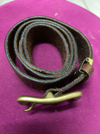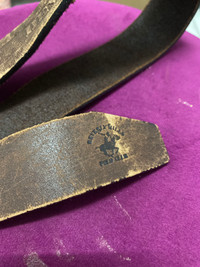 Vintage Beverly Hills Club Leather Belt with Brass Buckle This classic vintage leather belt features a stylish “Beverly Hills Club” engraving, making it a distinctive accessory for any collection. Crafted with durable brown leather, it includes a sturdy brass buckle and multiple adjustment holes for the perfect fit. The belt’s sleek, minimalist design ensures it complements a variety of outfits, from casual to semi-formal, with a touch of elegance. The embossed text adds a sophisticated, branded detail, showcasing its heritage from the prestigious Beverly Hills area. Ideal for those who appreciate unique, timeless accessories. • Brand/Mark: Beverly Hills Club • Material: Leather with brass buckle • Condition: Pre-owned, shows some wear, but overall in good condition with visible signs of use and patina for vintage appeal. • Unique Features: Embossed “BEVERLY HILLS CLUB” text on the belt strap, adding a subtle yet bold design element. • Beverly Hills leather belt • Vintage brass buckle belt • Embossed leather belt • Beverly Hills accessories • Unique vintage belts • Classic leather belt • Fashion belts with engraved design • Beverly Hills Club belt Manual waist size:31 Actually size:29-33 Long: 36.5” Width:1.4” Sale are final