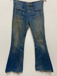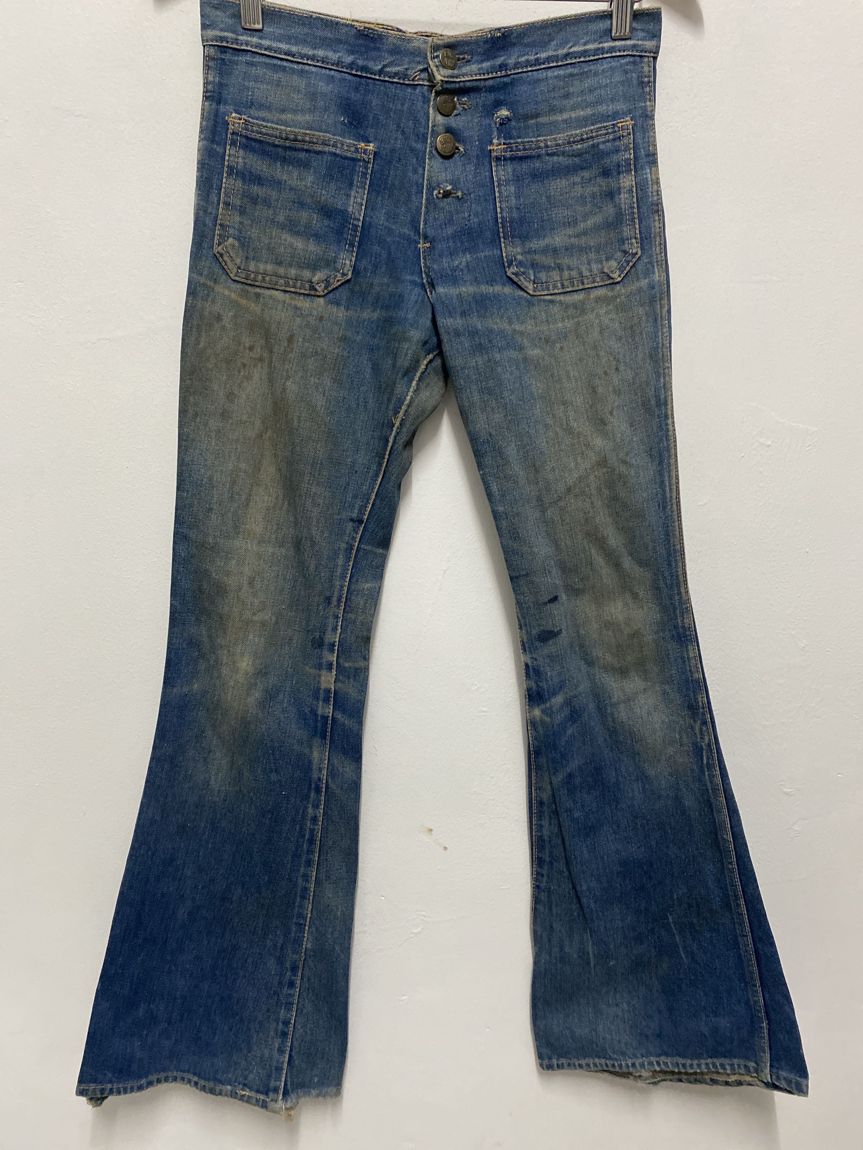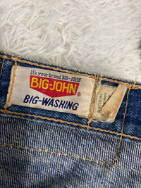 Vintage BIG JOHN “Big Washing” Flare Jeans Japan 70s Denim Button Fly BIG JOHN is one of Japan’s most iconic denim brands, known for pioneering Japanese-made jeans since the 1960s. These jeans are from the “BIG WASHING” line, likely produced in the early-to-mid 1970s, and feature heavy wear with beautiful patina, a sign of their age and authenticity. The BIG JOHN label played a significant role in introducing high-quality Japanese denim to the world, and their vintage pieces are now highly collectible. Step into true vintage Japanese craftsmanship with these 1970s BIG JOHN flare jeans. Featuring a rare “Big Washing” inner label, classic wide flare leg cut, and button fly closure with original “BIG JOHN” embossed buttons. These jeans display natural wear, fading, paint marks, whiskers, and heavy distressing – giving them an authentic vintage workwear aesthetic. Ideal for collectors, vintage denim lovers, or fans of Japanese Americana style. • Brand: BIG JOHN • Era: 1970s • Model/Line: Big Washing • Size (Tag): 30, manual:29 • Waist (Measured): [29] • Inseam (Measured): [30”], outseam: 38”, open leg:10”,front rise:9”,thigh:10”,knee:7”) • Style: High Rise, Flared Leg • Closure: Button Fly,missing 1 button • Fabric: 100% Cotton Denim • Made in: Japan • Condition: Pre-owned vintage condition with visible wear, fading, stains, fraying hems, and distressing as shown in photos. Leather patch is partially missing/cracked. Please review all images for details. Vintage BIG JOHN jeans, Big Washing denim, Japanese denim, 1970s flare jeans, vintage Japanese jeans, button fly jeans, collectible denim, vintage workwear jeans, flare leg selvedge denim, Big John flare pants #BigJohnJeans #VintageDenim #JapaneseSelvedge #70sJeans #FlareDenim #SelvedgeDenim #HeritageWear #VintageWorkwear #BigWashing #DenimCollectors #VintageStyle #madeinjapan