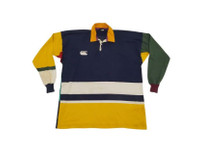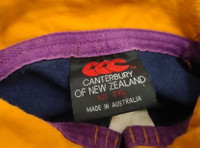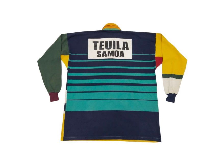 Vintage Canterbury of New Zealand Rugby Jersey 3XL Teuila Samoa Made in Australia Rare vintage Canterbury of New Zealand rugby jersey featuring “Teuila Samoa” on the back. Made in Australia, this long-sleeve jersey has a bold multicolor design with a classic CCC logo on the chest. The material is a cotton/polyester blend, ensuring comfort and durability. It has some signs of wear, including light stains on the sleeves and body (see photos). Perfect for collectors, rugby enthusiasts, or vintage streetwear fans. • Brand: Canterbury of New Zealand • Size: 3XL (chest:27”, length:33”) • Made in Australia • Teuila Samoa design • Long-sleeve rugby jersey • Multicolor panel design • Material: Cotton/Polyester • Condition: Used, some visible wear/stains (see photos) Vintage rugby jersey, Canterbury rugby shirt, Teuila Samoa rugby, made in Australia, CCC rugby jersey, 3XL rugby shirt, rugby fan apparel, retro rugby top, vintage sportswear, 90s rugby jersey #VintageRugby #CanterburyNZ #TeuilaSamoa #RugbyJersey #RetroSportswear #Streetwear #MadeInAustralia #CCCJersey #3XLFashion #90sSportswear