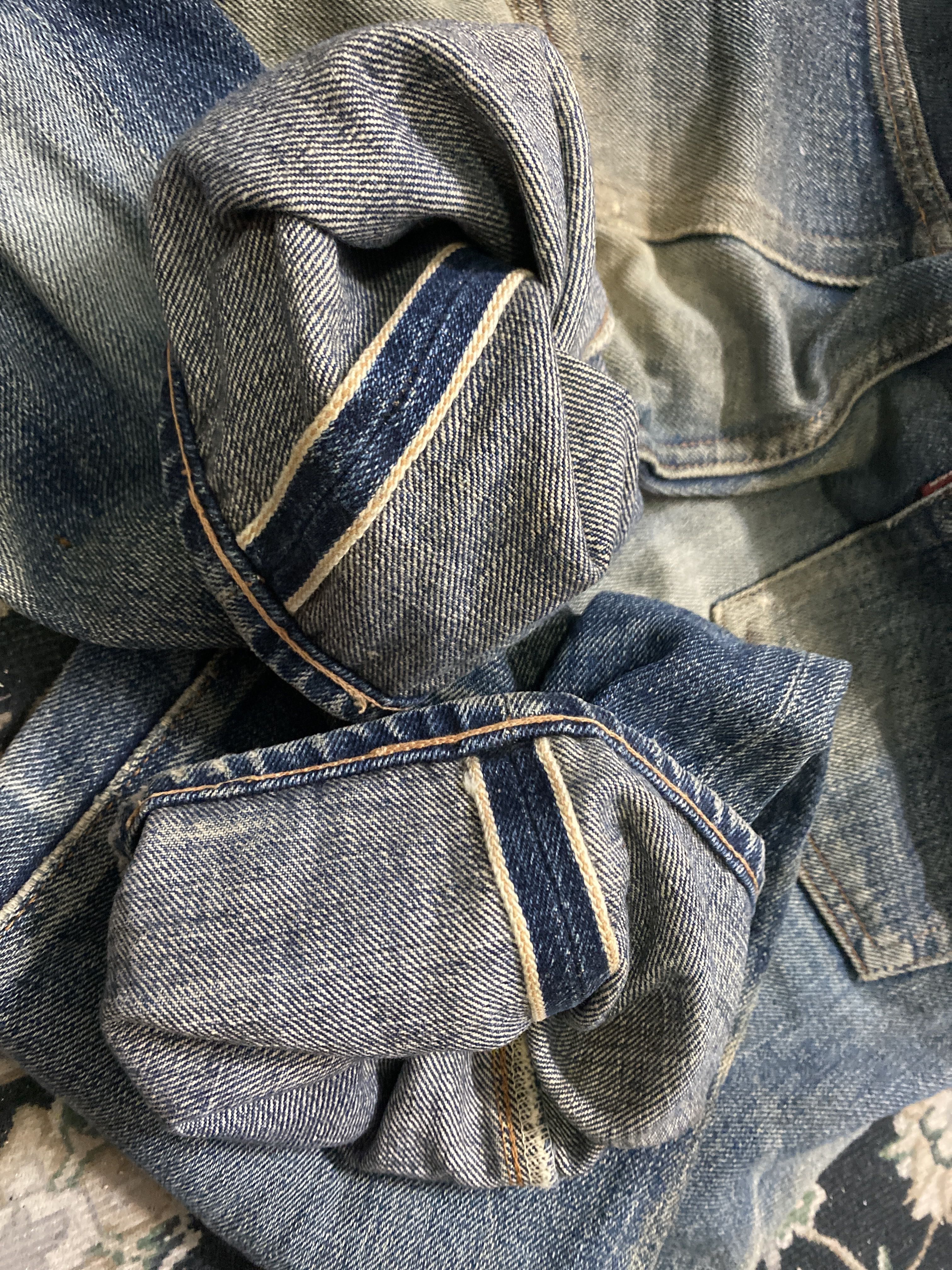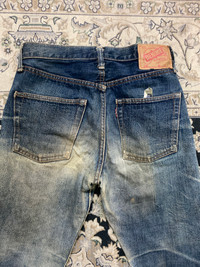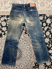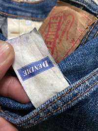 Vintage Denime Authentic Japanese Denim Jeans - Raw Indigo These vintage Denime Authentic Japanese Denim Jeans are crafted from high-quality cotton denim with a raw indigo finish that will continue to fade beautifully over time. The jeans feature a distinctive leather patch on the back waistband, branded with the DENIME logo. The back pockets and the denim’s rugged texture reflect the traditional craftsmanship behind Japanese denim. These jeans have natural creases and distressing around the thighs and knees, making them a true vintage piece. The denim’s color fading and unique features add character, offering a timeless look for denim enthusiasts and collectors. • Brand: Denime • Material: 100% Cotton • Color: Raw Indigo, with natural fading/distressing • Condition: Pre-owned, with visible distressing and fading consistent with the wear. • Size: Tagged size available (refer to the label images) • Made In: Japan • Features: Leather waistband patch, classic 5-pocket design, copper rivets • Care: Machine wash cold (gentle cycle recommended) • Denime jeans • Japanese denim • Vintage denim • Raw indigo jeans • Denime denim • High-quality denim • Japanese raw denim jeans • Denime vintage jeans