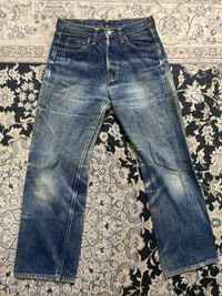 Vintage Denime Authentic Japanese Denim Jeans - Raw Indigo These vintage Denime Authentic Japanese Denim Jeans are crafted from high-quality cotton denim with a raw indigo finish that will continue to fade beautifully over time. The jeans feature a distinctive leather patch on the back waistband, branded with the DENIME logo. The back pockets and the denim’s rugged texture reflect the traditional craftsmanship behind Japanese denim. These jeans have natural creases and distressing around the thighs and knees, making them a true vintage piece. The denim’s color fading and unique features add character, offering a timeless look for denim enthusiasts and collectors. • Brand: Denime • Material: 100% Cotton • Color: Raw Indigo, with natural fading/distressing • Condition: Pre-owned, with visible distressing and fading consistent with the wear. • Size: Tagged size available (refer to the label images) • Made In: Japan • Features: Leather waistband patch, classic 5-pocket design, copper rivets • Care: Machine wash cold (gentle cycle recommended) • Denime jeans • Japanese denim • Vintage denim • Raw indigo jeans • Denime denim • High-quality denim • Japanese raw denim jeans • Denime vintage jeans