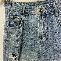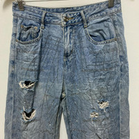 Japanese Brand White Dress Jeans Distressed Denim Size on tag:26 Manual waist size:28 Outseam 35”in Inseam 23.5”in Leg opening 6.5”in Thigh 11.5”in Knee 9”in Front rise 11”in
