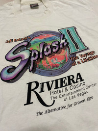 The image is a logo for “Jeff Kutash’s Splash II: The Voyage of a Lifetime,” a show that was performed at the Riviera Hotel & Casino in Las Vegas. It was produced by Jeff Kutash. It was advertised as “The Entertainment Center of Las Vegas” and “The Alternative for Grown-Ups.” The show was active in the 1990s. The Riviera Hotel & Casino closed in 2015. The logo may be found on vintage merchandise, such as T-shirts and matchbooks Chest: 21”in Length:28”in A little flaw/ defect Please refer a picture Sku: storageboxblue