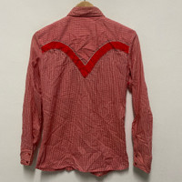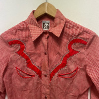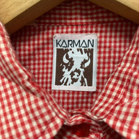 Karmani red and white checkered western shirt with embroidered logo and red trim - button up Chest: 17” Length:25” #western #cowboy #rodeo