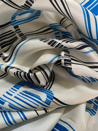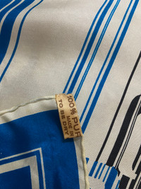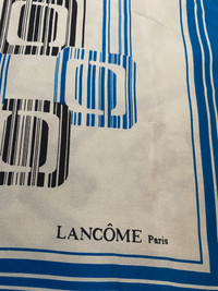 Vintage LANCÔME Paris Silk Scarf Geometric Blue & Black Made in France Add a touch of elegance to your wardrobe with this rare vintage LANCÔME Paris silk scarf. Featuring a modern geometric pattern in black and blue on a cream-colored background, this sophisticated accessory is framed with a stylish blue border. Made from high-quality silk, this luxurious scarf embodies timeless French fashion. A perfect collectible piece or a classy addition to any outfit. • Brand: LANCÔME Paris • Material: 100% Silk • Design: Geometric pattern • Colors: Blue, Black, Cream • Origin: Likely Made in France • Condition: Vintage LANCÔME Paris scarf, vintage silk scarf, geometric print scarf, blue and black silk scarf, luxury designer scarf, French fashion, collectible scarves, elegant silk scarf, rare vintage scarf #LANCÔME #VintageScarf #SilkScarf #FrenchFashion #LuxuryAccessories #GeometricPrint #DesignerScarf #TimelessStyle #ClassicElegance