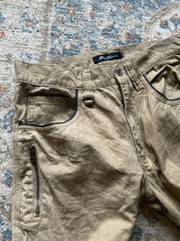 *Vintage ROOT THREE Gas Mask Tactical Cargo Flared Pants ➤ BRAND NAME : ROOT THREE CONDITION : (USED : 8/10) MATERIAL : 100% Cotton COLOR : Light Brown Army (COLOR MAY SLIGHTLY VARY DUE TO PHOTOGRAPHIC LIGHTING SOURCE OR YOUR MONITOR/SCREEN SETTING) ......…................................................................ ➤ SIZE MANUAL MEASUREMENT (INCHES) WAIST : 30" (SIZE ON TAG : 79cm ) LENGTH ; *Outseam : 40.5" *Inseam : 31.5” RISE ; *Front Rise : 10.5” *Back Rise : 13.5” THIGH : 13” LEG OPENING : 9” (PLEASE CHECK ACTUAL SIZE & PICTURES CAREFULLY, ALL SALES ARE FINAL, NO RETURN OR REFUND) .......….............................................................. ➤EXPRESS SHIPPING The Items Will Be Shipped From Asia (Malaysia) Using DHL EXPRESS / ETA (5~8 Days) Worldwide (PLEASE SEND ME YOUR CONTACT NUMBER AFTER MAKING A PURCHASE FOR SHIPPING PURPOSE :TO BE WRITTEN ON THE PARCEL) ~ sku:61023rakdlm