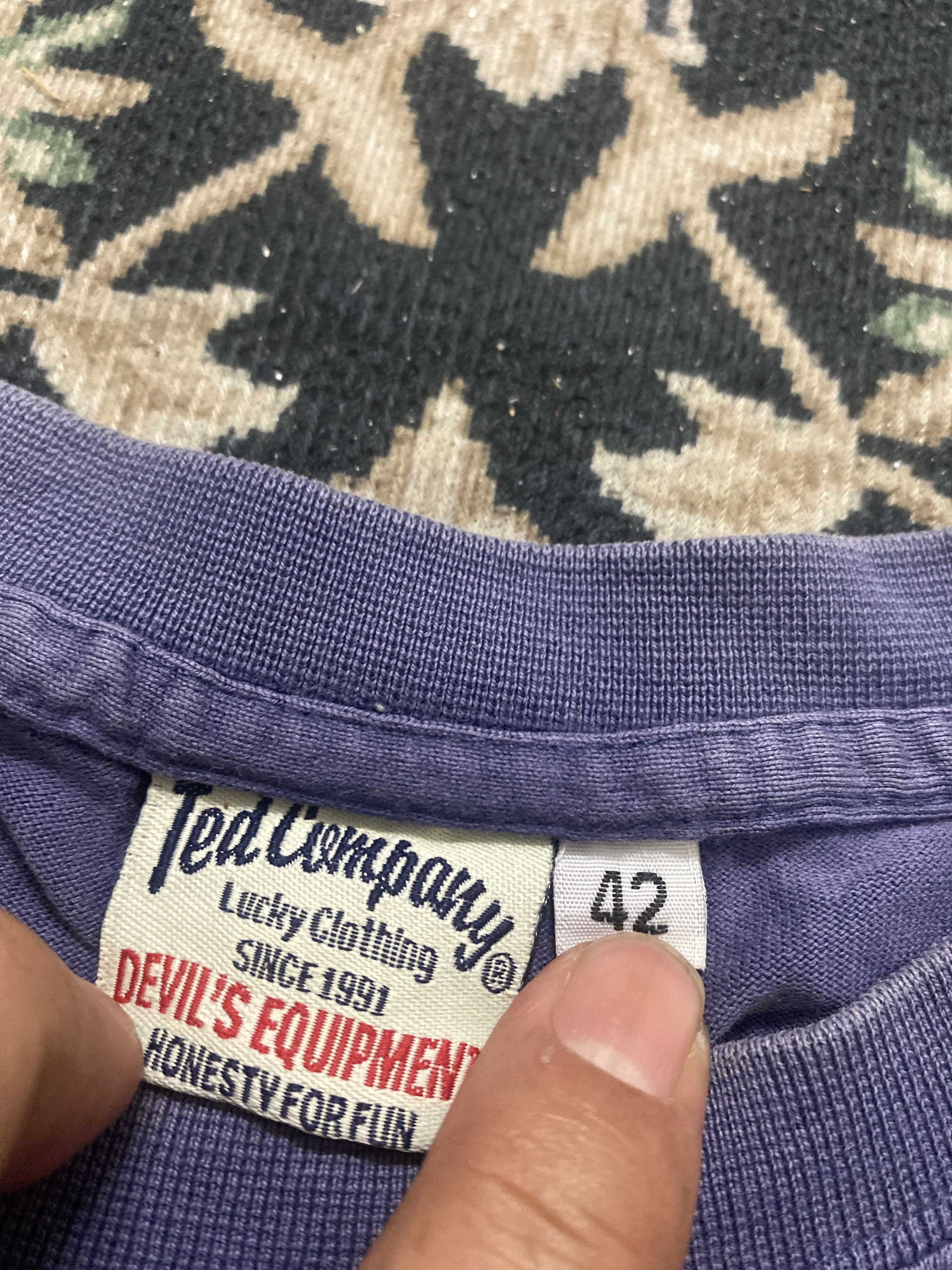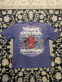 Vintage Tedman’s Lucky Devil Mark of the Devil 1991 T-Shirt Japan This is a rare Tedman’s Lucky Devil “Mark of the Devil” graphic t-shirt from 1991. Made in Japan, this tee features a bold red devil mascot on both the front and back, with intricate Japanese-inspired graphics and text. The phrase “Blow Out the Bad Luck!!” is printed prominently, symbolizing good fortune. • Brand: Tedman’s (Ted Company) • Material: 100% Cotton • Color: Faded Blue / Purple • Size: (42, chest: 21.5”in, length: 26.5”in) • Condition: (Mention any flaws, fading, or wear) • Made in Japan A perfect addition for collectors of vintage Japanese streetwear, Harajuku fashion, or Tedman’s enthusiasts. Tedman’s (also known as Ted Company) is a Japanese brand famous for its “Lucky Devil” character, which represents good luck despite its mischievous devilish appearance. The brand has gained cult status among vintage clothing fans and Americana-style enthusiasts in Japan. Tedman’s Lucky Devil T-Shirt, Ted Company Vintage Tee, Mark of the Devil Japan, Japanese Vintage Streetwear, Harajuku Graphic Tee, Tedman’s 1991 Shirt, Rare Tedman T-Shirt #Tedmans #LuckyDevil #VintageTee #JapaneseStreetwear #MarkOfTheDevil #HarajukuFashion #RareFind #TedCompany #AmericanaStyle #1990sFashion Sku:R1446H