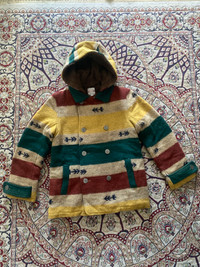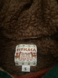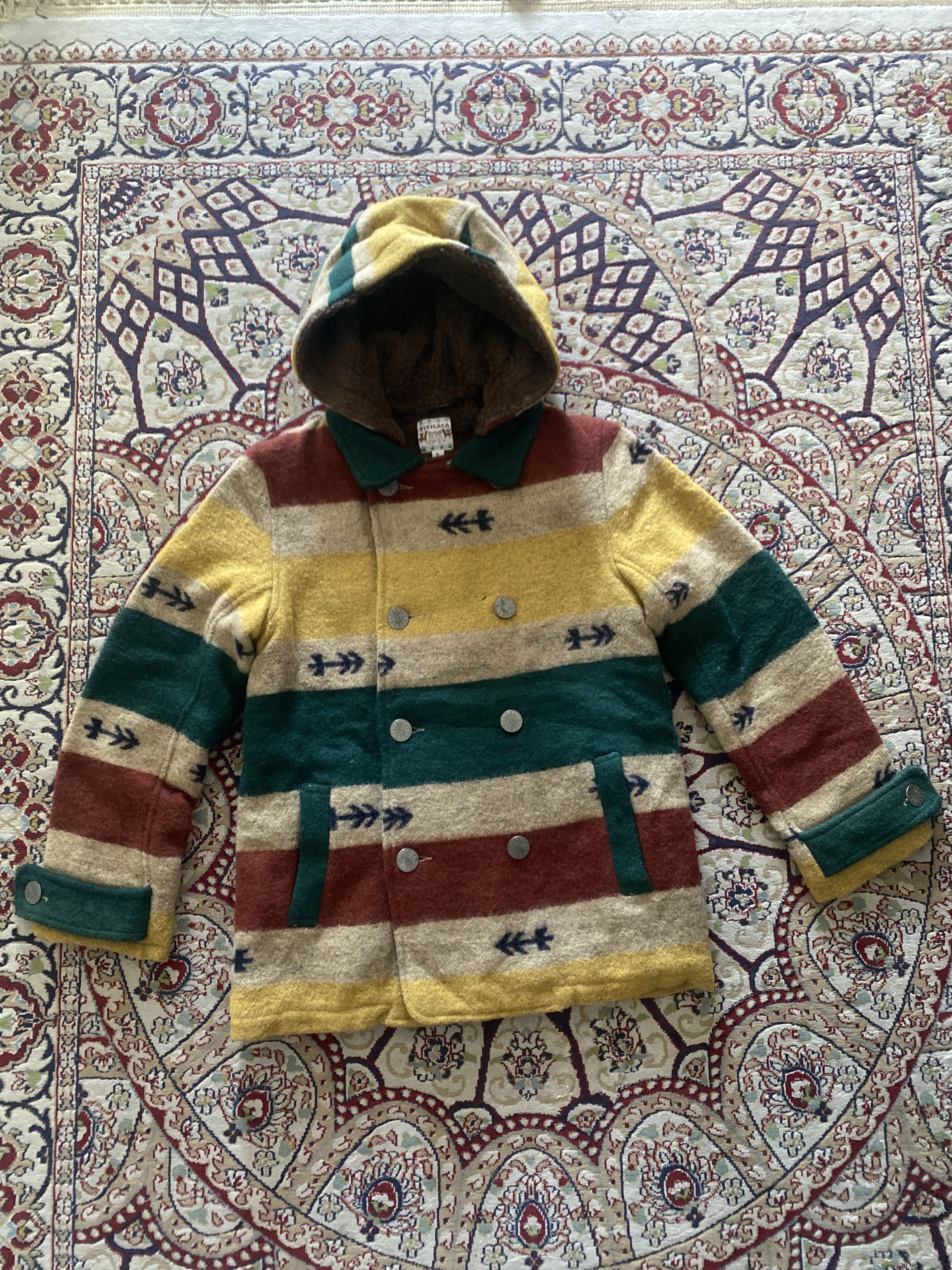 Vintage Titicaca Wool Blend Hooded Jacket Southwestern Striped Pattern Small This is a vintage Titicaca wool-blend hooded jacket featuring a bold Southwestern-inspired striped pattern in earthy tones of green, yellow, red, and beige. The jacket has a cozy sherpa fleece lining, a double-breasted button closure with floral-engraved metal buttons, and adjustable cuffs. Made for warmth and style, it’s perfect for collectors of bohemian, Native American, or folk-style clothing. • Titicaca is a brand known for its ethnic and folk-inspired designs, originating in 1977. • Wool-blend jackets like this are highly sought after for their durability and warmth. • The Southwestern aesthetic, with native-inspired patterns, is popular in vintage and boho fashion markets. vintage titicaca jacket, wool blend hooded coat, southwestern striped jacket, boho wool coat, vintage sherpa jacket, folk style coat, 70s 80s 90s jacket, double-breasted wool jacket #VintageJacket #Titicaca #SouthwesternStyle #WoolCoat #BohoFashion #EthnicWear #SherpaLined #winterfashion