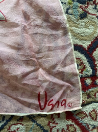 Vintage Usna Japan Silk Blend Floral Scarf Pink White Roses 53% Silk 47% Nylon This is a beautiful vintage Usna Japan floral scarf made from a luxurious silk blend. The scarf features a stunning pink and white rose print on a sheer, lightweight fabric. Crafted with 53% silk and 47% nylon, this scarf is soft, elegant, and perfect for any occasion. It has a hand-rolled edge and an artistic signature from the designer “Usna” on one corner. Ideal for collectors, vintage fashion lovers, or as a gift. • Brand: Usna Japan • Material: 53% Silk, 47% Nylon • Color: Pink, White • Design: Floral, Roses • Size: Approximate dimensions not provided (measure for accuracy) • Condition: Pre-owned, may have minor signs of wear (please check photos) This scarf is a vintage piece from Usna Japan, a brand known for high-quality silk scarves with artistic floral prints. Vintage silk blend scarves, especially from Japanese brands, are highly collectible due to their craftsmanship and unique designs. The floral motif makes it timeless and elegant. #VintageScarf #UsnaJapan #SilkScarf #FloralScarf #JapaneseVintage #LuxuryScarf #RetroFashion #WomensAccessories #SilkBlend #PinkScarf