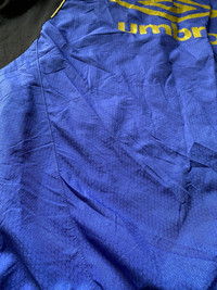 Tag : Umbro Condition 9/10 Gread used condition: no hole and no impurities Size on tag : M Amrpit to amrpit : 22 inches Back callor to him : 27 inches Shipping cost= $20 for economy or $25 expedited worldwide shipping. Receiving the item withim 5-10 (economy ) ( expedited) business day after payment cleared. Payment= accept "PAYPAL" only. SHIPPING: "Shipped Worldwide with DHL express or Pos Malaysia Registered Mail with Tracking Number, Therefore, I do Not accept RETURNS and Please read the full description and measurements very carefully before buying. “BUY WITH CONFIDENT AND ASK ME ANY QUESTION..!! DEAR VALUED CUSTOMER:- •All measurement were been measured flat on the floor. •Please don't expect this item condition 100% like new unless i have mention it •Please don't worry about custom tax fees during shpping becouse i always declared all item as a gift and wrote value lower than original price usually just $10 only. •Please do not hesitate to contact me if you have any inquiries. Its my great pleasure to have conversation with customers. ATTENTION:- Please pay close attention to measurement provided. Do not rely on tag size as pre worn item may have been altered stretehed or shrunk & vintage sizes do not directly translate the modern sizes. The best way to ensure a correct fit is to compare our measurement with the measurement of a similar item that you know fits you well. Please enlarge the photo for clearer image. =sku: 2020