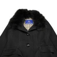 Burberry London Blue Label Fox Fur Wool Belted Coat