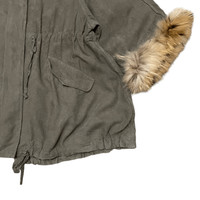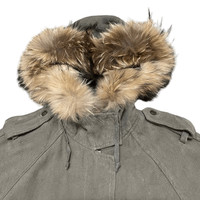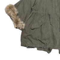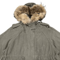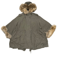 Vintage Balcony and Bed Raccoon Fur Jacket Military Style