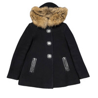 Sandro Raccoon Fur Wool Hooded Coat