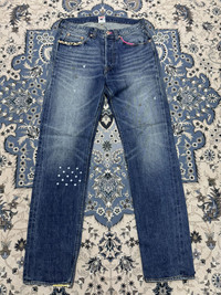🌈Everyday is a fashion show and the world is your runway 🌈 👍welcome to Han Didi Store 👍 We ship using Economy Shipping . Description 100% base on picture Price is negotable!!! ✔️Brand : Japanese Brand Goodhood x R.Newbold Selvadge Painted Jeans ✔️Size : M Country of origin : Usa 【MEASUREMENTS 】 Waist : 31 inches Inseam : 32 inches Total length : 44 inches Opening legs: 7 inches (Pls kindly check the measurements carefully as it is the actual fit) **Remark : IGNORE US PLEASE SIZE REFER MANUAL MEASUREMENT AND ITEMS NOT WASH ** 【PAYMENT 】 Accept PayPal only (All items will be shipped within 1-3 working days after payment completed.) 【SHIPPING 】 Economy Shipping : 10-21 days 【NOTICE 】 ▪️All items will be shipped along with the tracking number after postage ▪️Pls kindly leave your contact number, because shipping company always need the contact number help delivering ▪️All items will be mark purchase as (Gift) or make value the lowest avoid import tax or fees 【REFUNDS 】 No returns, exchanges or refunds 😘Thanks your visit Han Didi Store, pls kindly follow us. We’ll upload items everyday, TQ 😘