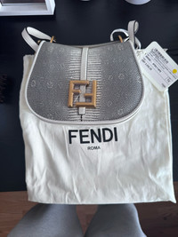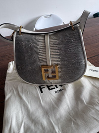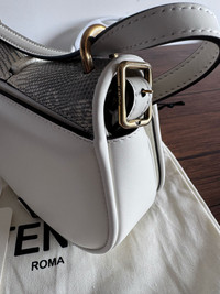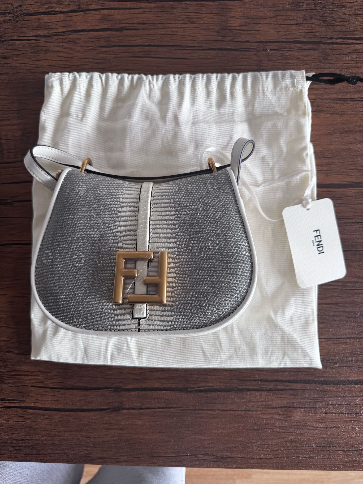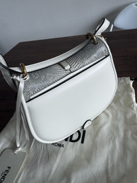 Cmon mini in white calf leather and white lizard . Magnetic clasp . Flat pocket on the back. Vintage gold finish metalware . With adjustable and detouchable strap . Never worn . Comes with dust bag , tag and cites for the lizard .