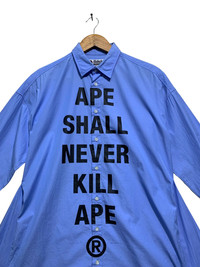 🔥RARE BAPE 4 HANDS OVERSHIRTS(BUTTON UP) SIZE XS CONDITIONS GENTLY USED COLOUR BLUE CODE: PB4