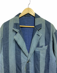 🔥BLUE BLUE DENIM CHORE JACKETS CANDY STRIPES DESIGN SIZE M MADE IN JAPAN CONDITIONS USED COLOUR DENIM BLUE CODE : BLUE 8