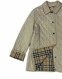🔥BURBERRY QUILTED JACKETS NOVACHECK INNER SIZE M MADE IN ENGLAND 🏴 CONDITIONS USED GOT SOME DEFECTS ON END RIGHT HAND PLEASE REFER PICTURES COLOUR CREAM WHITE CODE : RED 10