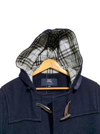 🔥BURBERRY WOOL DUFFLE COATS HOODIE NOVACHECK SIZE S MADE IN JAPAN 🇯🇵 CONDITIONS GENTLY USED COLOUR NAVY CODE: GK19