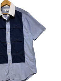🔥GANRYU X CdG SIC POCKETS SHIRTS BUTTON UP SIZE L MADE IN JAPAN 🇯🇵 CONDITIONS GENTLY USED COLOUR BLUE AND NAVY CODE: RED 2