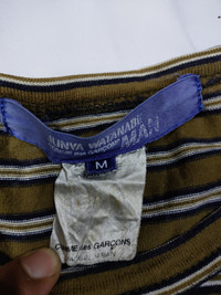 JW MAN CDG SAMPLE PADDED L/S STRIPES SHIRTS SIZE M ARMPIT 21 INCHES LENGHT 28 INCHES SHOULDER 20 INCHES SLEEVES 25 INCHES MADE IN JAPAN ITEM SAMPLE STATED CONDITION GENTLY USED NOTED : GOT SLIGHTLY FADED BY SUN AT BODY PLEASE REFER PIC CODE: GREEN 6