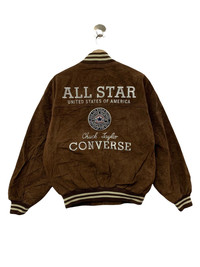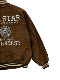 🔥VTG CONVERSE PIGSKIN LEATHER VARSITY JACKETS BIG LOGO SPELLOUT SIZE L CONDITIONS GENTLY USED COLOUR BROWN