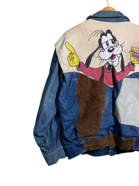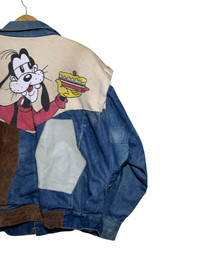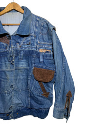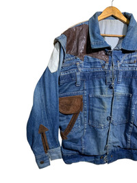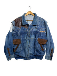 🔥DENIM COSTUM WITH LEATHER PARTS PATCHWORKS JACKET SIZE XL COLOUR BLUE CONDITIONS USED GK64