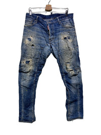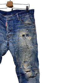 🔥DSQUARED2 DISTRESSED DENIM ITALY SIZE WAIST 36 INCHES LENGHT 39 INCHES INSEAM 31.5 INCHES CONDISTIONS USED COLOUR BLUE DENIM CODE: GK7