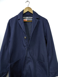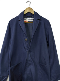KATO NAVY & GROUND INDIGO BLUE LONG JACKET SNAP BUTTON TYPE SIZE M ARMPIT 21 INCHES LENGHT 37 INCHES SLEEVES 25 INCHES SHOULDER 18 INCHES MADE IN JAPAN CONDITION : GENTLY USED CODE; IKEA B