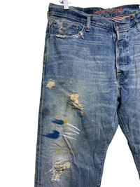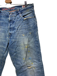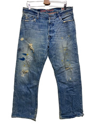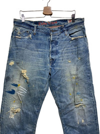 🔥EZRA FITCH DISTRESSED DENIM W36 WAIST 36 INCHES LENGHT 43 INCHES MADE IN MEXICO 🇲🇽 COLOUR BLUE DENIM CONDITIONS USED CODE: GK39