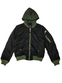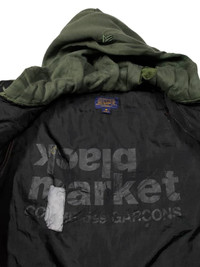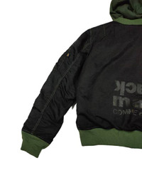 BRAND :ALPHA INDUSTRIES X CDG TYPE : BOMBERS HOODIE JACKETS COLOUR : BLACK /GREEN CONDITION :USED GOT FEW DEFECTS PLEASE REFER PICTURE CLEARLY