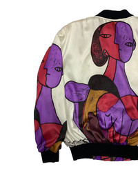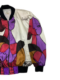 🔥VTG PICASSO ART BOMBERS JACKET SIZE FREE MADE IN KOREA CONDITIONS USED -GOT SMALL DEFECTS UNDER ARMPIT REFER PHOTO CODE: G5