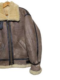 🔥VTG TYPE B-3 SHEEPSKIN LEATHER JACKET SIZE L MADE IN USA 🇺🇸 COLOUR BROWN RS