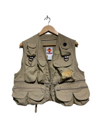 🔥COLUMBIA WILD MAN CAMPING MULTIPOCKETS VEST SIZE FREE CONDITIONS USED MADE IN USA COLOUR BROWN KHAKI CODE: GK10