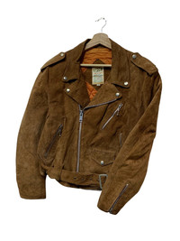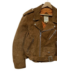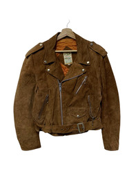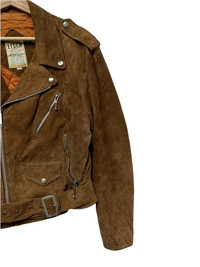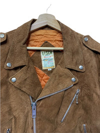 🔥GENUINE SUEDE LEATHER BIKER JACKETS SIZE M MADE IN JAPAN CONDITIONA USED COLOUR BROWN