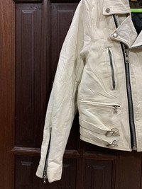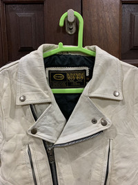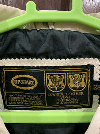 🔥UPSTART COWHIDE LEATHER DOUBLE COLLAR CAFERACER PUNK JACKETS SIZE 38 MADE IN ENGLAND CONDITIONS GENTLY USED COLOUR WHITE