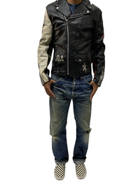 Genuine Leather - 🔥VTG LEATHER JACKETS DOUBLE COLLAR DIY PAINTED
