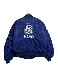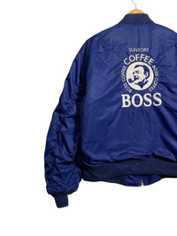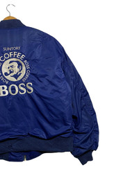 🔥BOSS SUNTORY COFFEE BOMBER JACKETS SIZE L MADE IN JAPAN 🇯🇵 COLOUR BLUE CONDITIONS VERY WORN -HEM CUFF GOT BIT DEFECTS REF PHOTO CODE: GK54