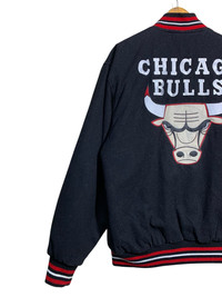 🔥JEFF HAMILTON DESIGNS FOR CHICAGO BULLS REVERSIBLE JACKETS SIZE XL AUTHENTIC MADE IN CHINA COLOUR BLACK MATERIAL WOOL AND NYLON CODE: GREEN 6