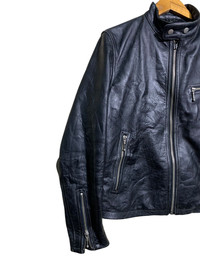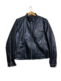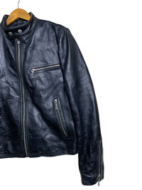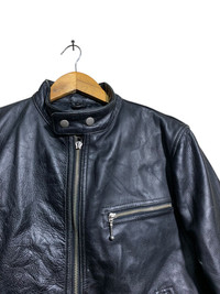 🔥BLACK LEATHER BIKERS JACKETS CAFERACER BRAND: AMIR SON’S GENUINE LEATHER COLOUR BLACK CONDITIONS GENTLY USED CODE: RS