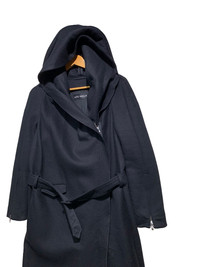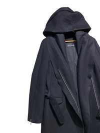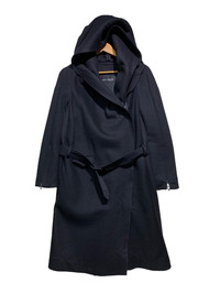 🔥LUTZ HUELLE F/W20 WOOL HOODIE TRENCH COAT SIZE 36 MADE IN HUNGARY ðŸ‡ðŸ‡º COLOUR BLACK CONDITIONS GENTLY USED CODE: BLUE 12